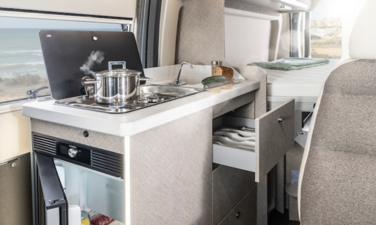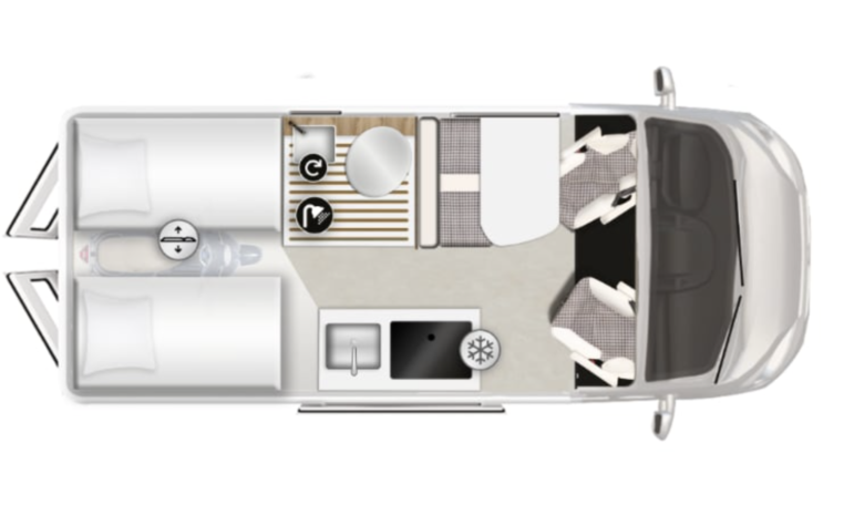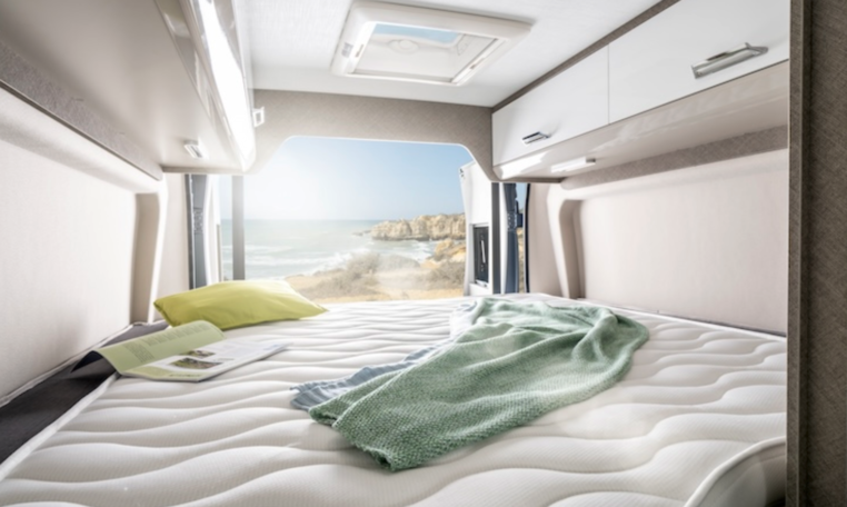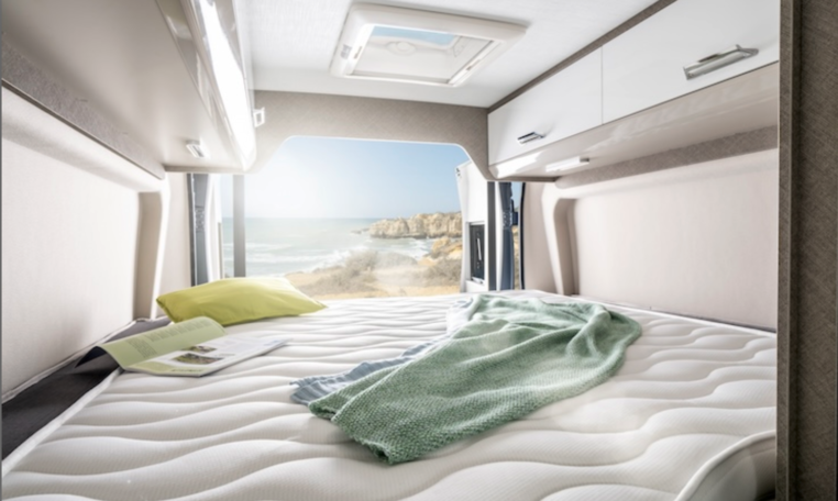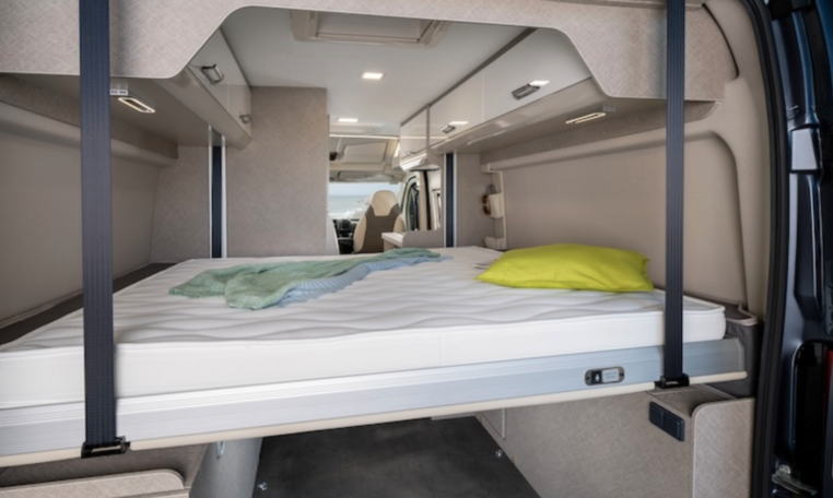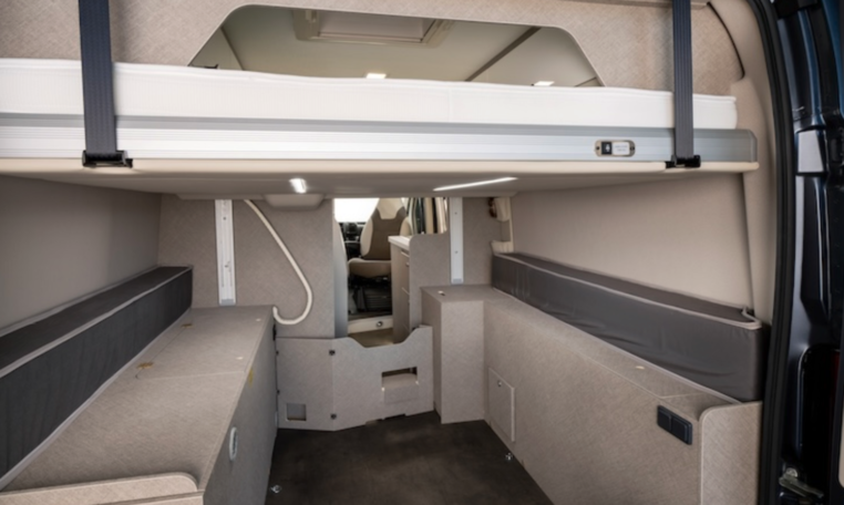 Sportovní nadšenci s objemným vybavením, nebo dokonce lehkými motocrossovými stroji, ocení výhody takto prostorného nákladového prostoru… a pohodlné postele nad ním.